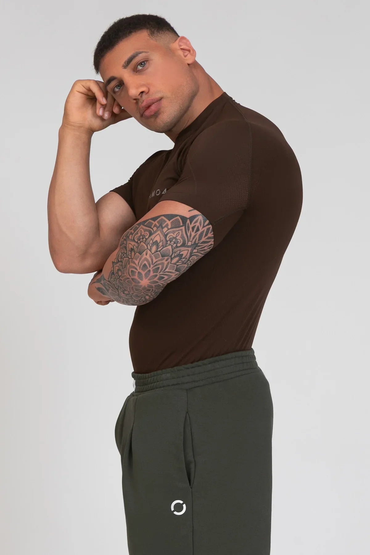 „Run” šokolado spalvos klasikinio stiliaus marškinėliai yra pralaidūs orui, todėl padeda mažinti prakaitavimą. Puikiai tinka vilkėti užsiimant bet kuria sporto šaka. Unikali audinio technologija gerina odos tonusą, mažina riebalų sankaupas ir aktyvina kraujotaką.