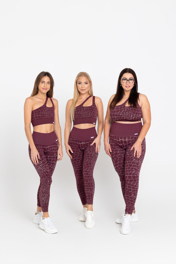 „Crocodile All-Up” bordo spalvos unikalaus rašto tamprės ne tik dailiai pabrėžia ir išryškina sėdmenis, bet ir maskuoja celiulito žymes. Gana aukštas modelio liemuo pabrėžia ir lieknina taliją.