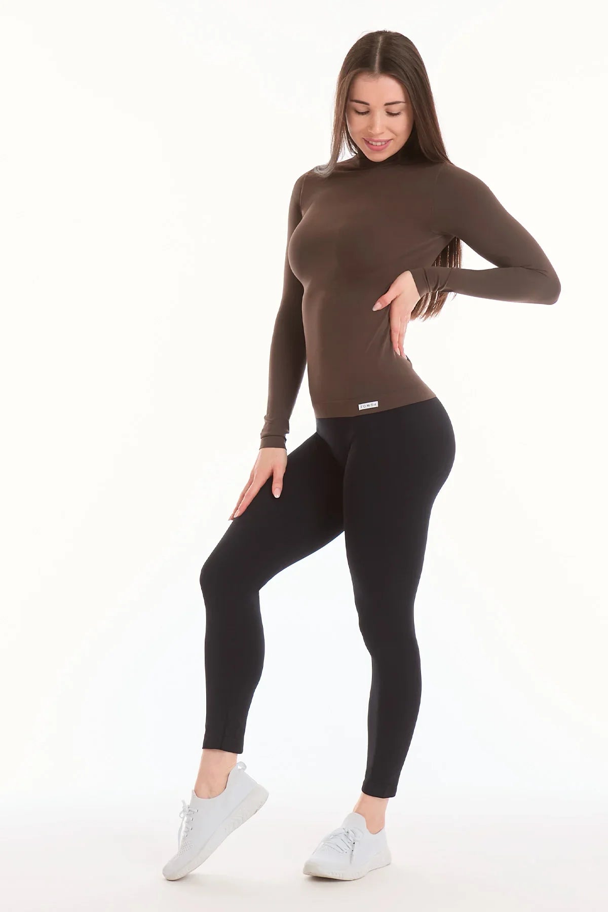 Formuojanti palaidinė aukštu kaklu FGM04 „Frida” - šokolado spalvos