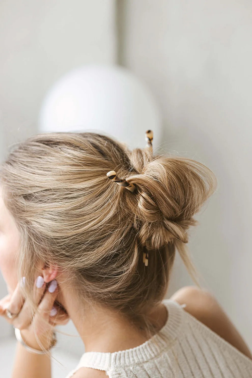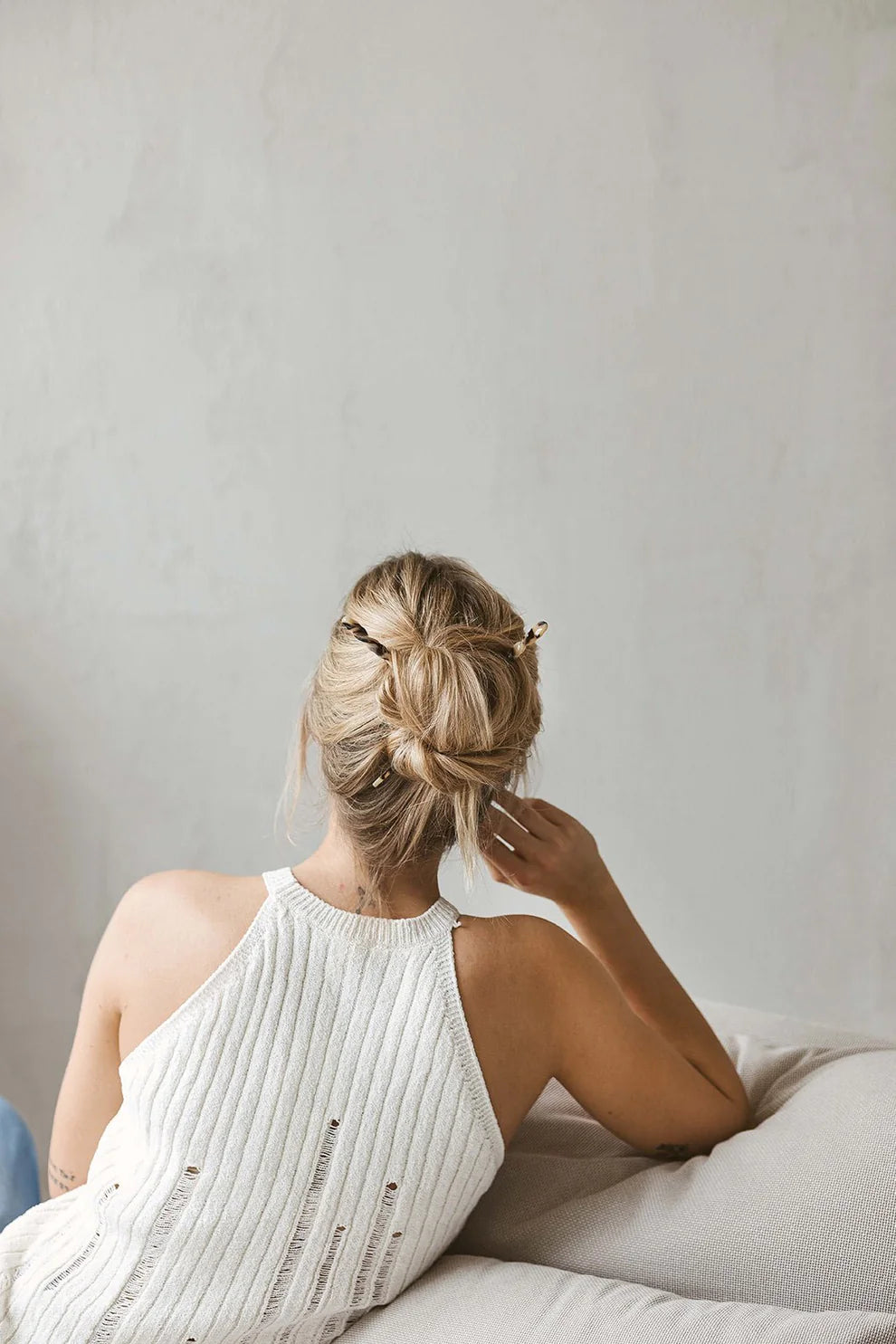 I formos smeigtukas tinka greitai, paprastai, pastangų nereikalaujančiai šukuosenai. Tiesiog susuk plaukus į kuodelį ir įsmeik smeigtuką.