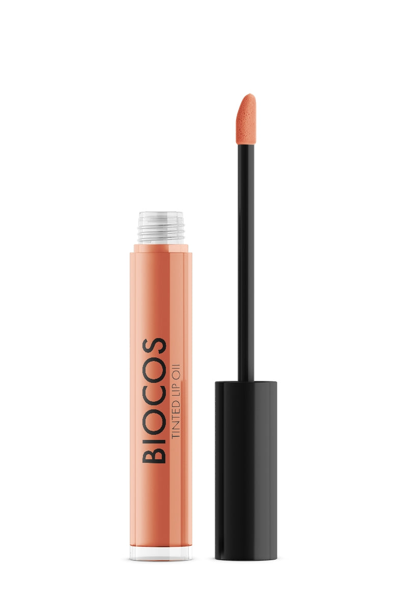 Drėkinantis lūpų aliejus (blizgesys) „Biocos" - persikų spalvos