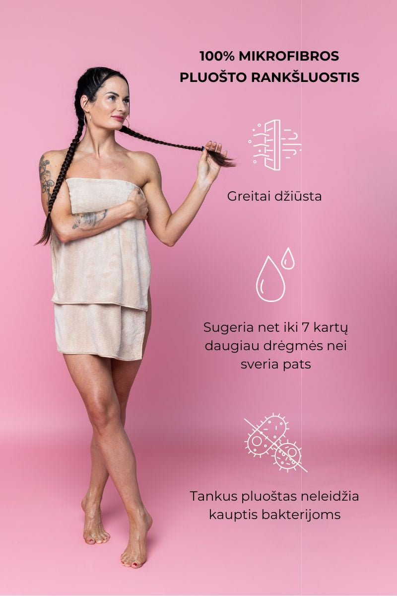 Itin minkšta mikropluošto tekstūra švelni odai ir plaukams, greitai sugeria drėgmę ir išlieka lengva bei švelni.