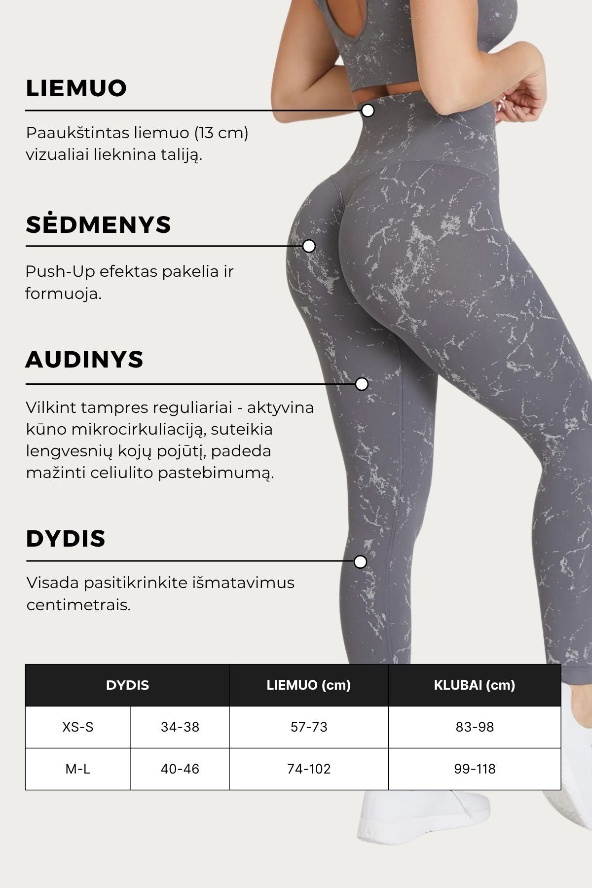 „Marble Push-Up” yra dailiai sėdmenis formuojančios ir „Push-Up“ efektą suteikiančios tamprės. Tekstūrinis marmuro raštas suteikia dinamiškumo Jūsų įvaizdžiui. Audinys maloniai priglunda prie kūno tarsi antra oda.